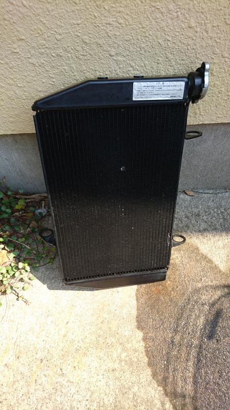 3週間経っても手付かず… だったんですが、日曜日にラジエター屋さんに商品を発送、修理、塗装してもらいなんと木曜日には到着。 修理は中3日でやって戴きました。素晴らしい。 しかも傷は浅いらしく、当初1ラインは死ぬと言われていましたが、問題なく 修理(溶接)ができたそうです。