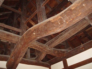 彦根城天守と天守内の梁