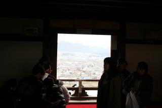 天守最上階からの外を見る。吸い込まれそう。