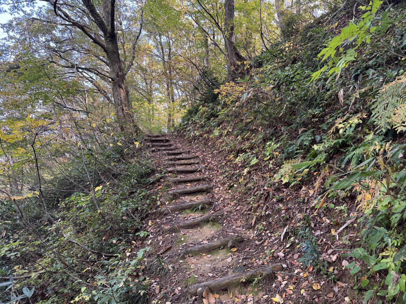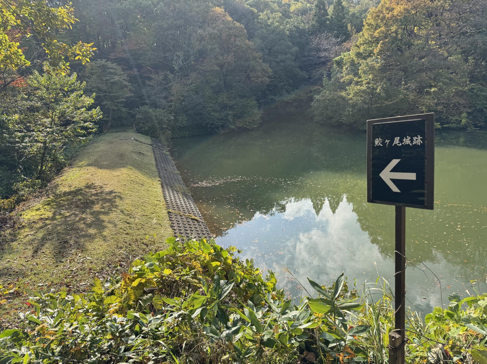 案内所から東登城道を通っていくには一度池まで下りる必要があります。