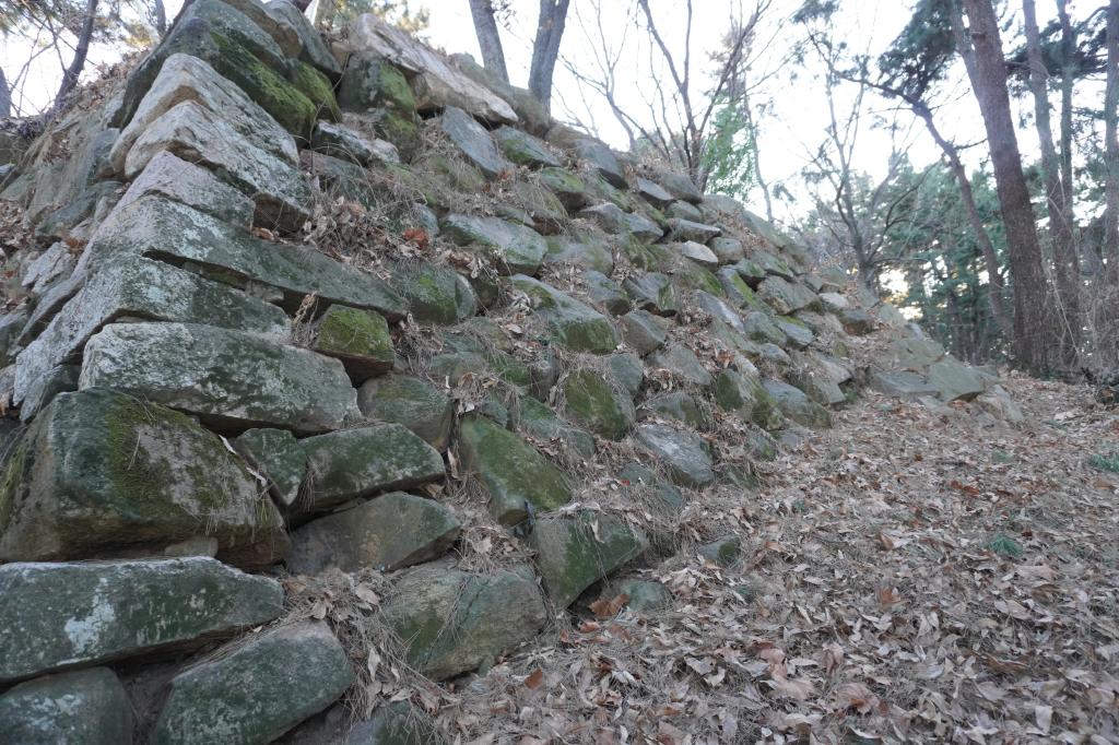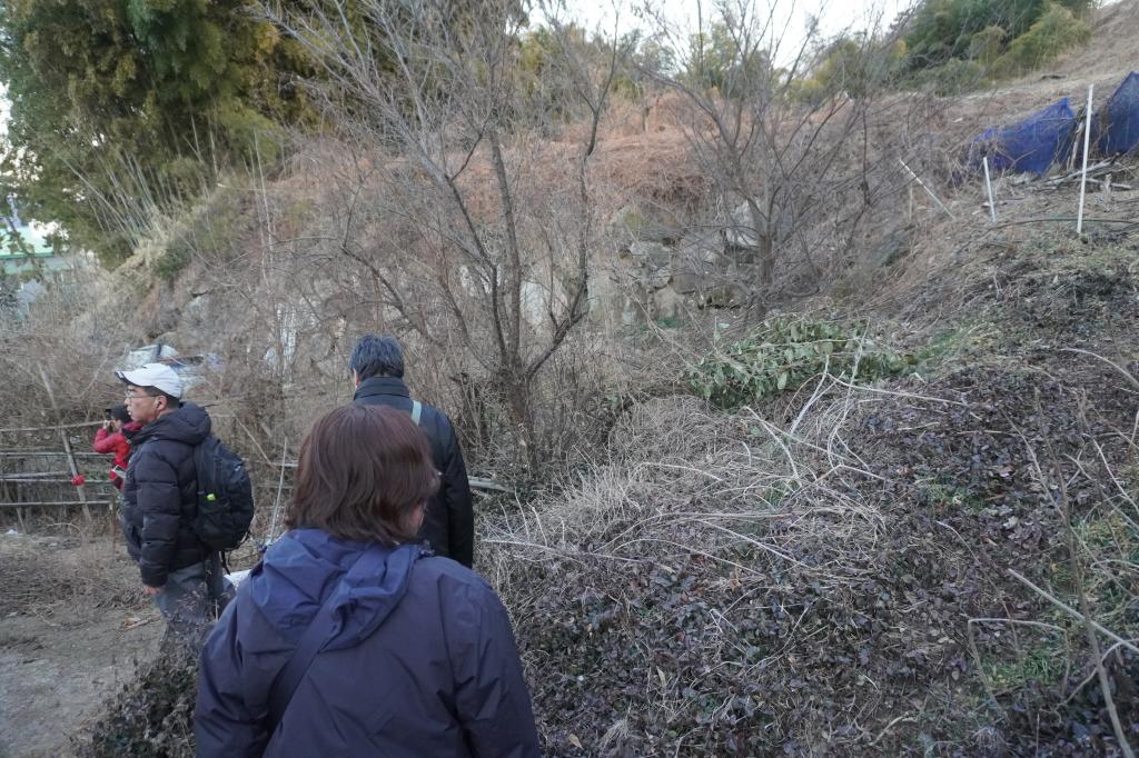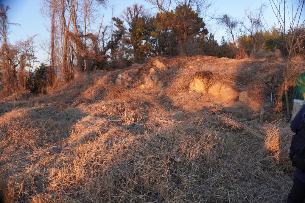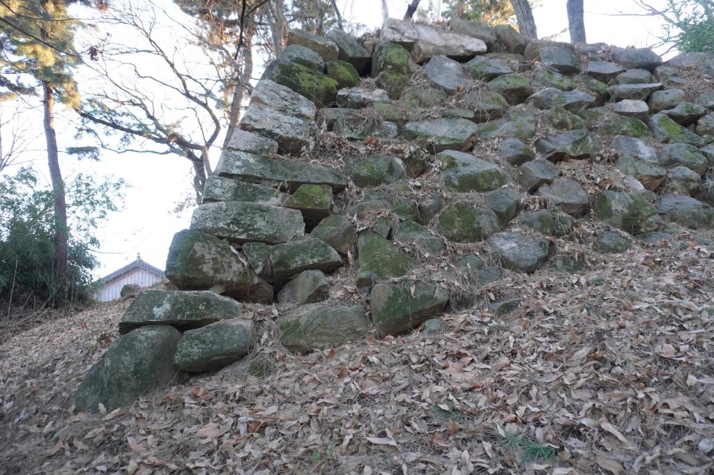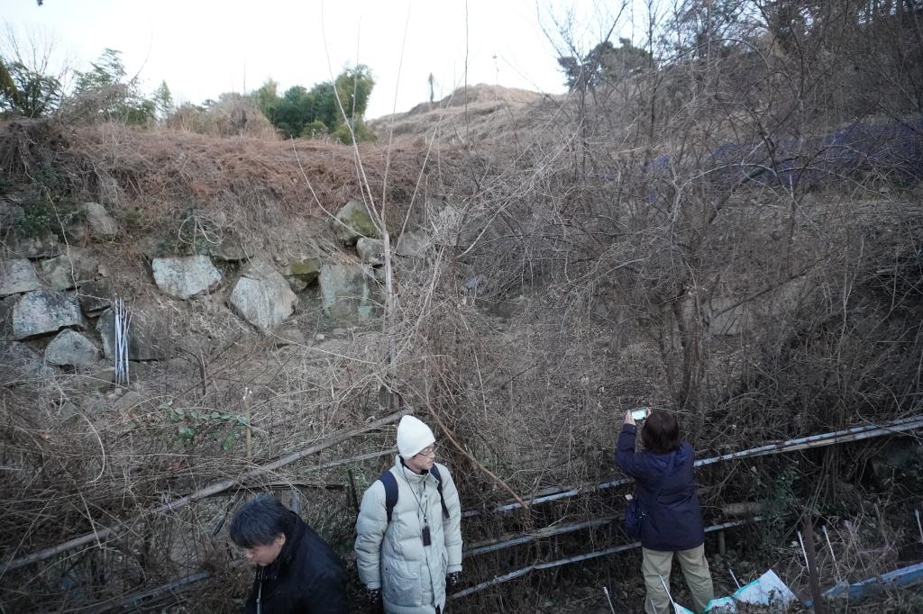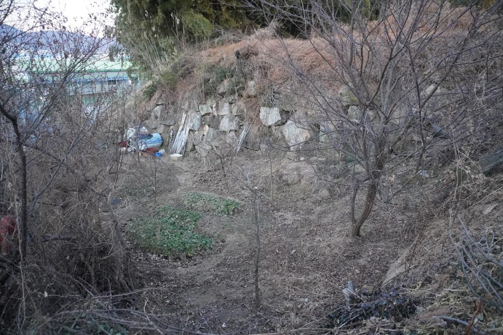 虎口の石垣は畑となり、一部が残っている状態