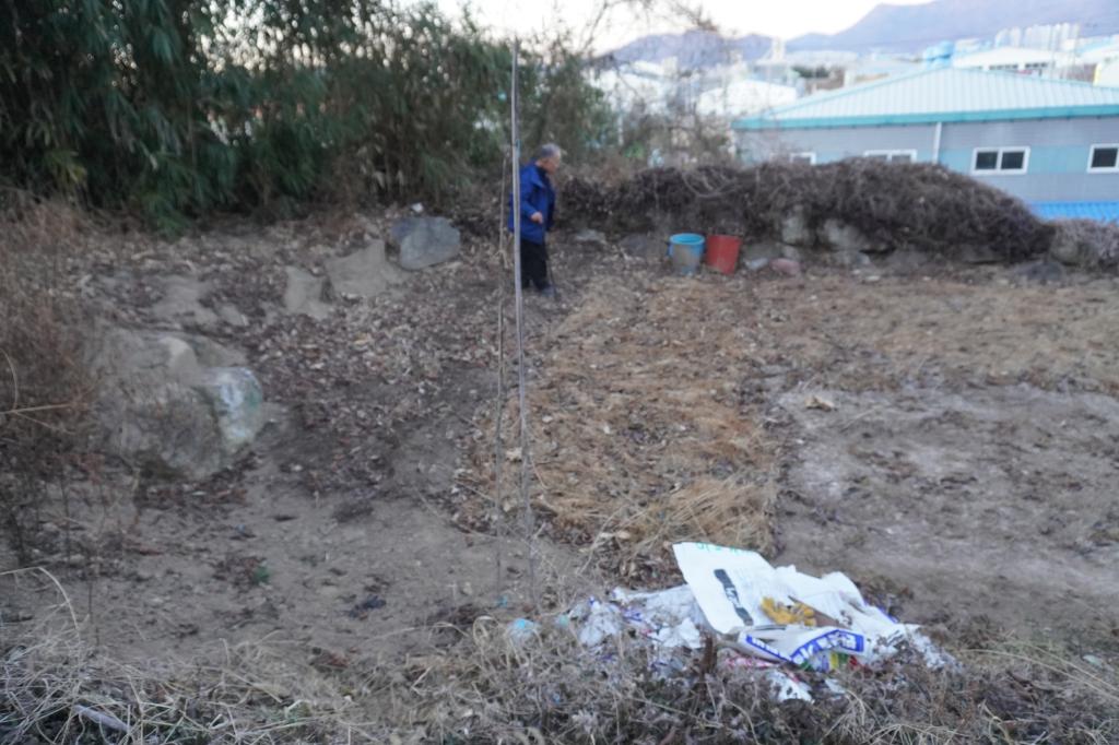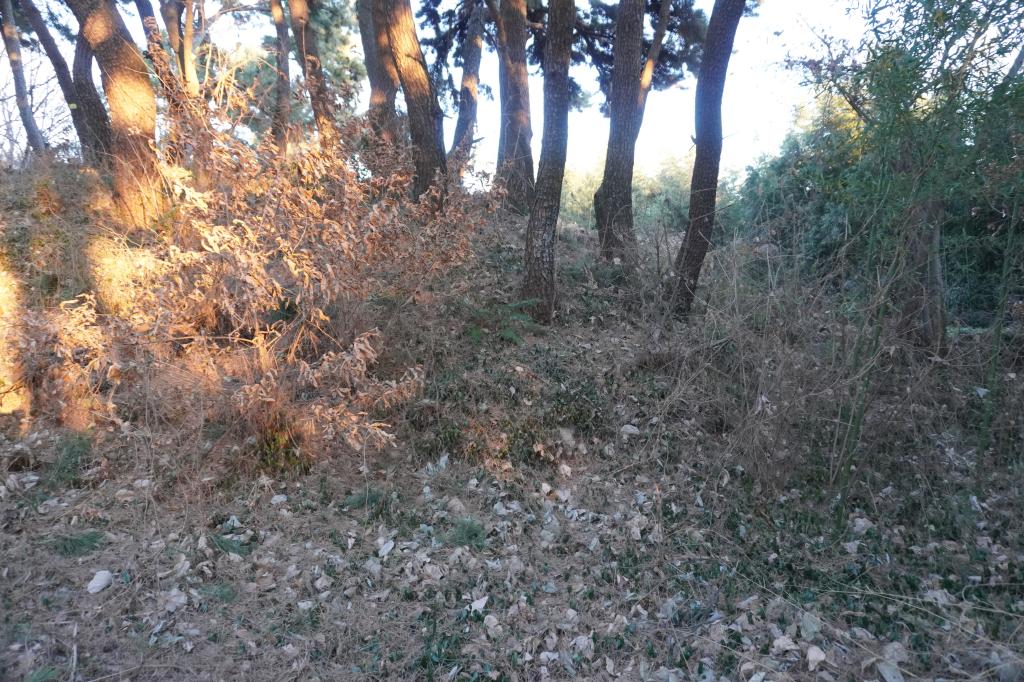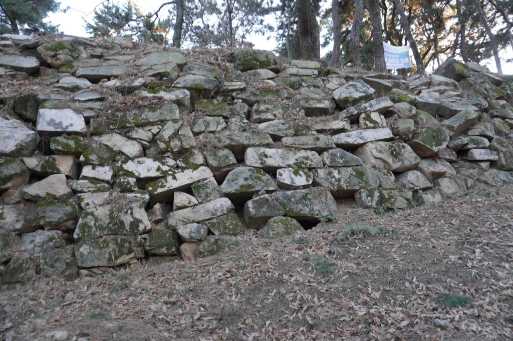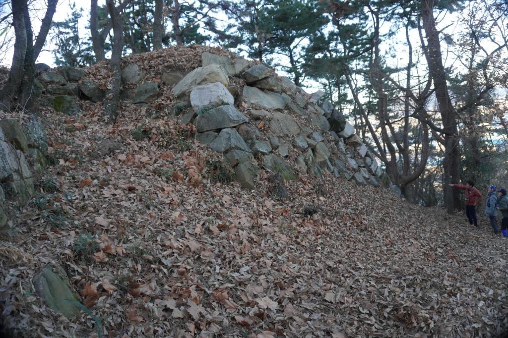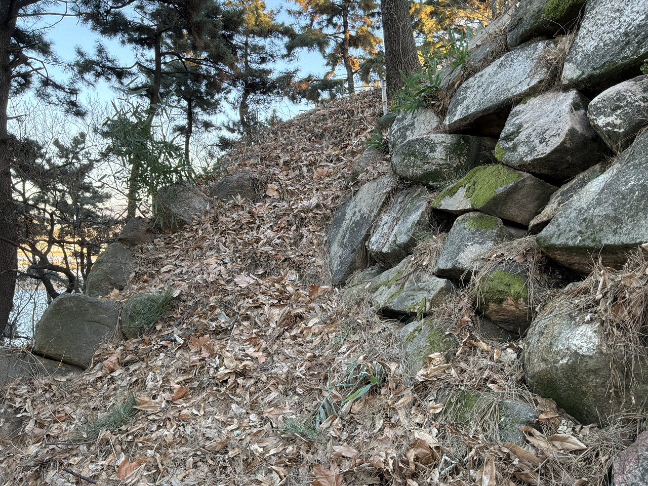 虎口の石垣は畑となり、一部が残っている状態