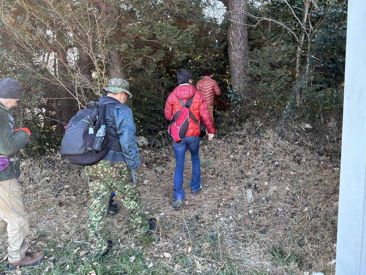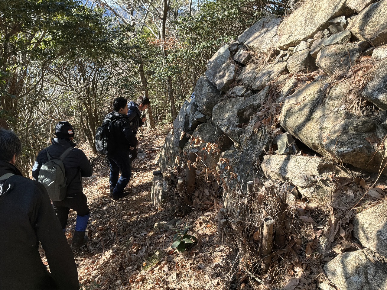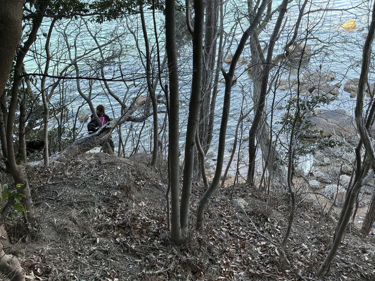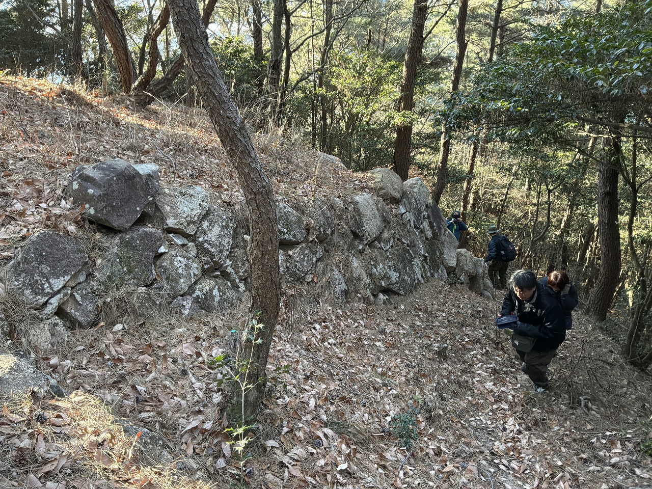 乾いた落ち葉の上を登っていくので滑る、滑る