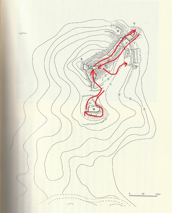 左に折れている虎口